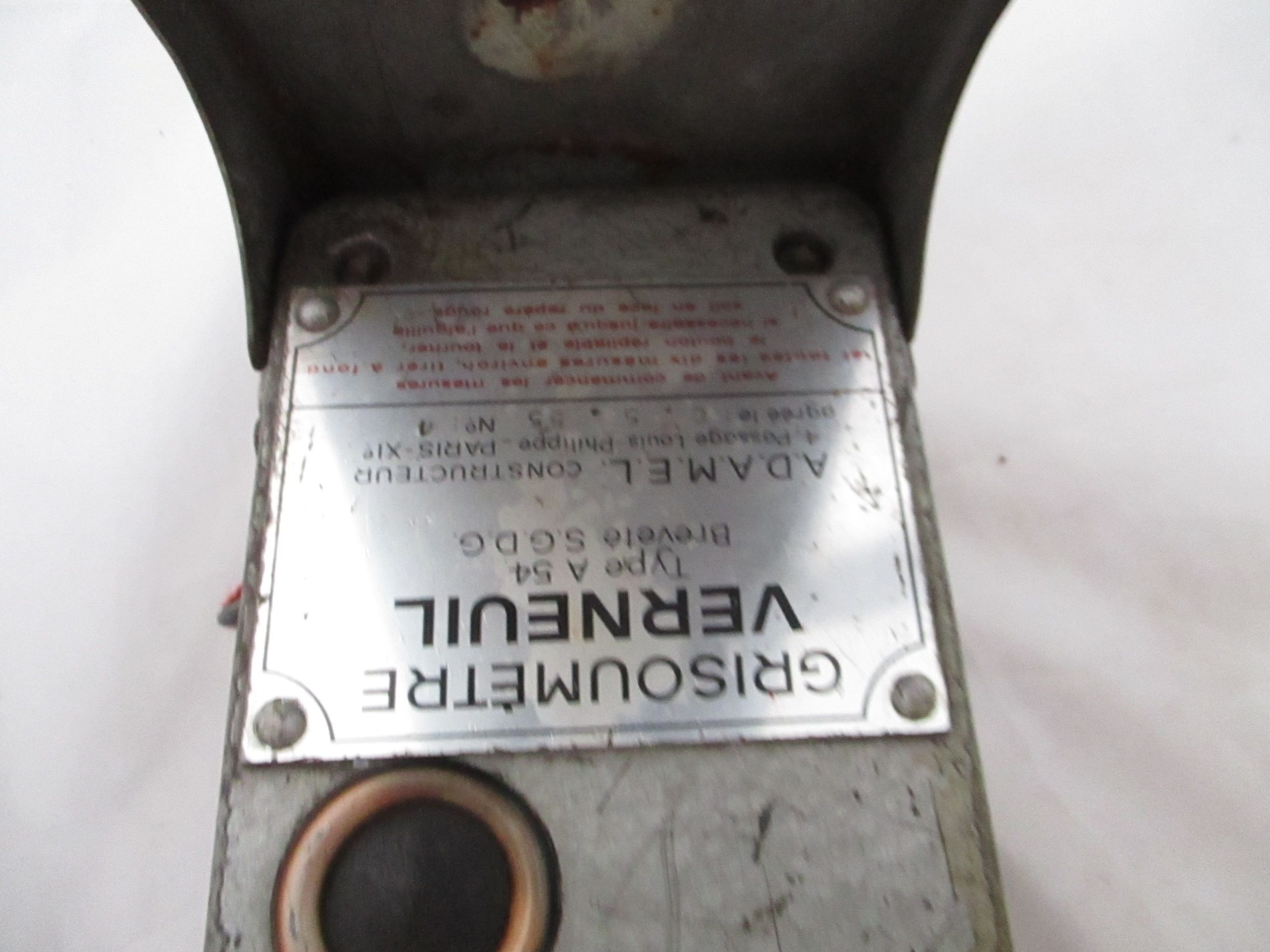 Grisoumètre rectangulaire avec un rabat protecteur et deux lanières en cuir.