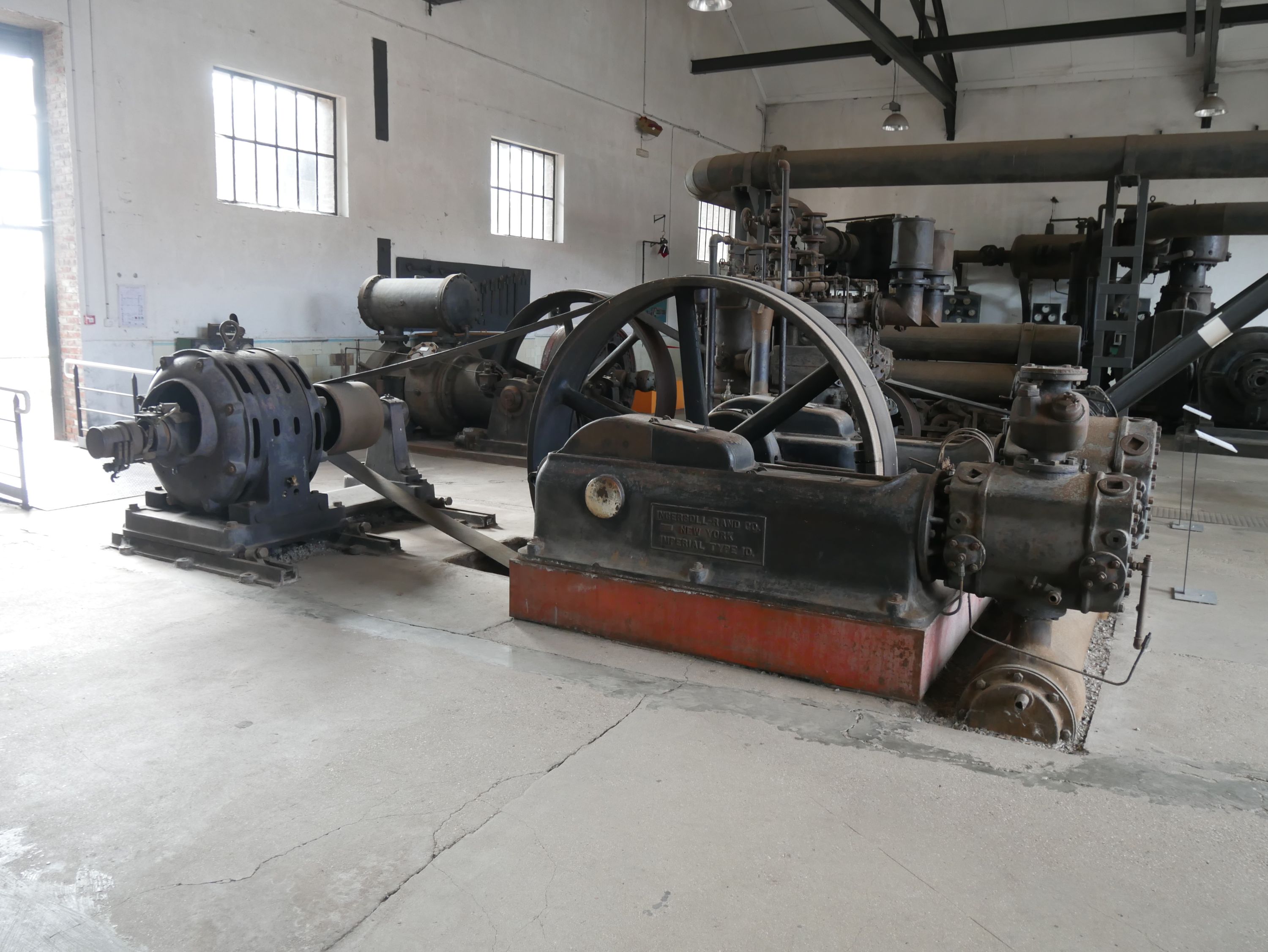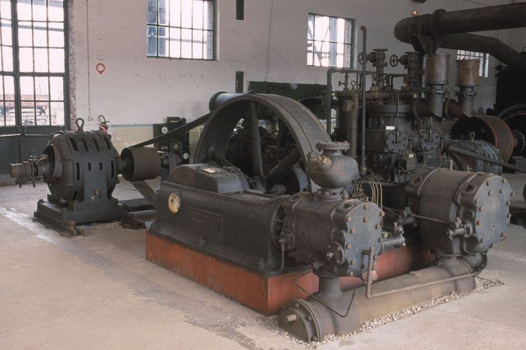 Compresseur de fabrication américaine d'une puissance de 110 cv, de type 10 et à deux pistons horizontaux.