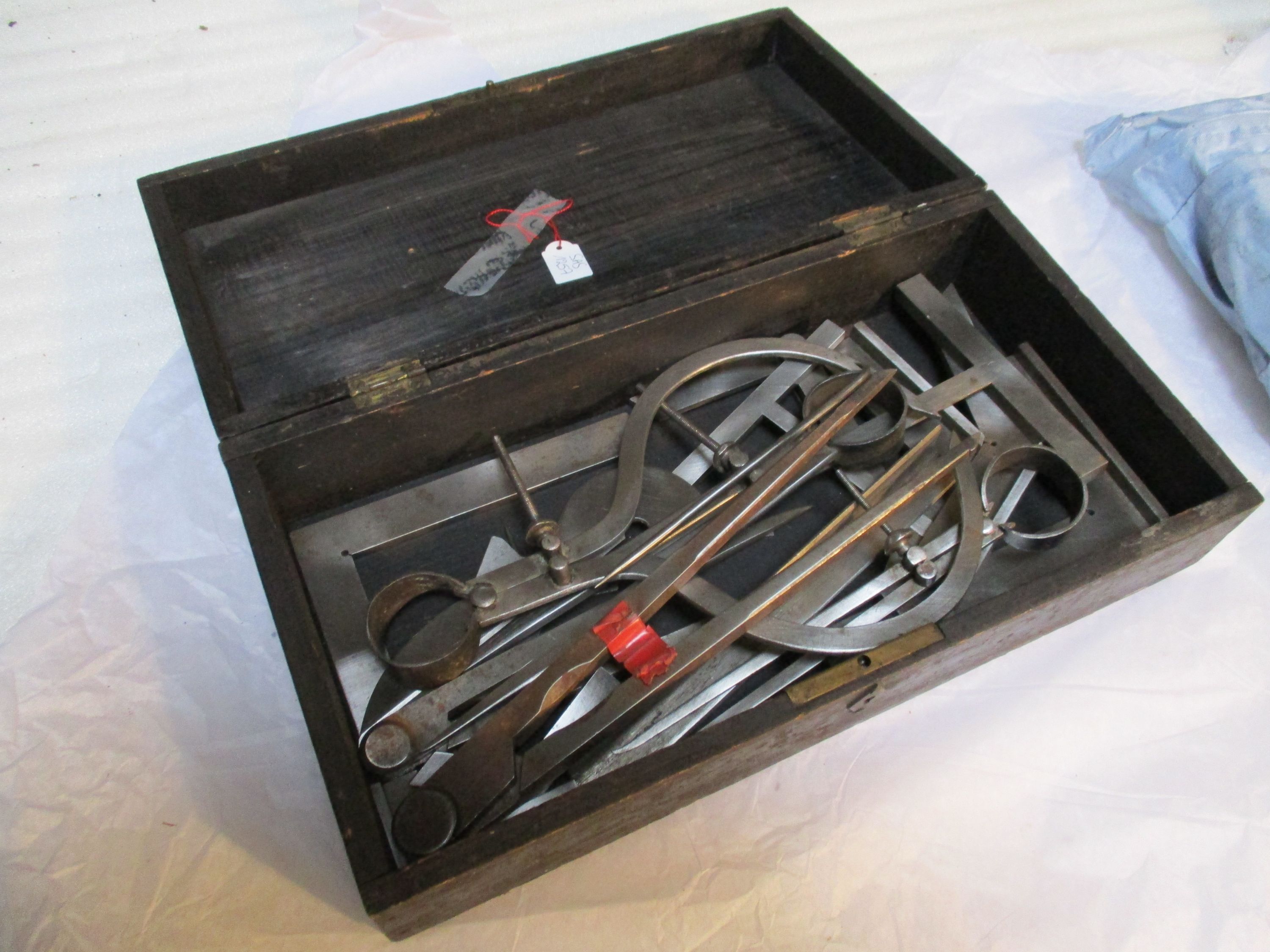 Caisse en bois contenant un lot de vingt et un outils d'ajusteur. Les outils ont été réalisés par un mineur pour obtenir le C.A.P. d'ajusteur.
