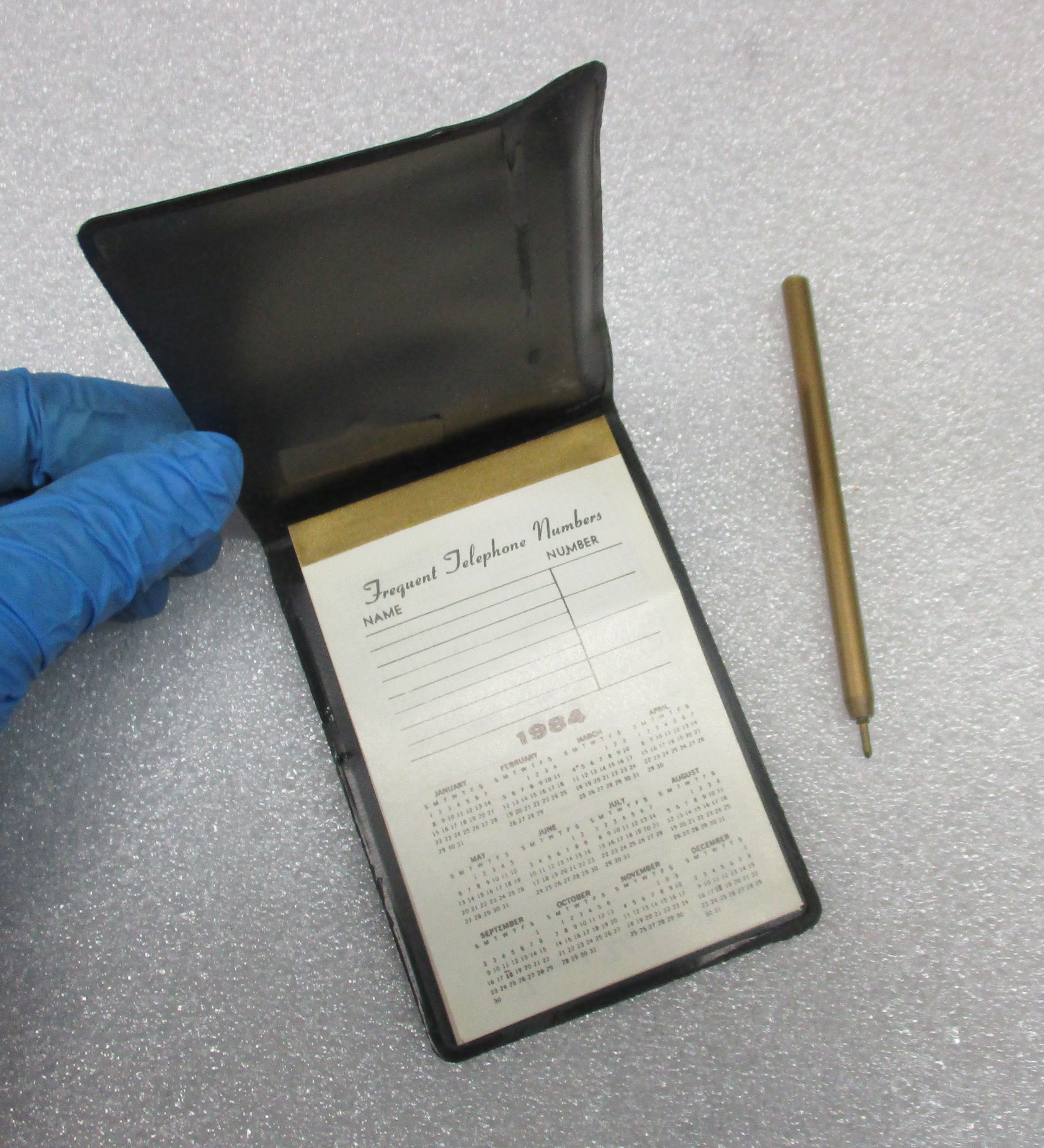 Calepin / calendrier dans un étui en plastique noir portant les logos des Charbonnages de France et du Groupe CdF. Un stylo accompagne le calepin.