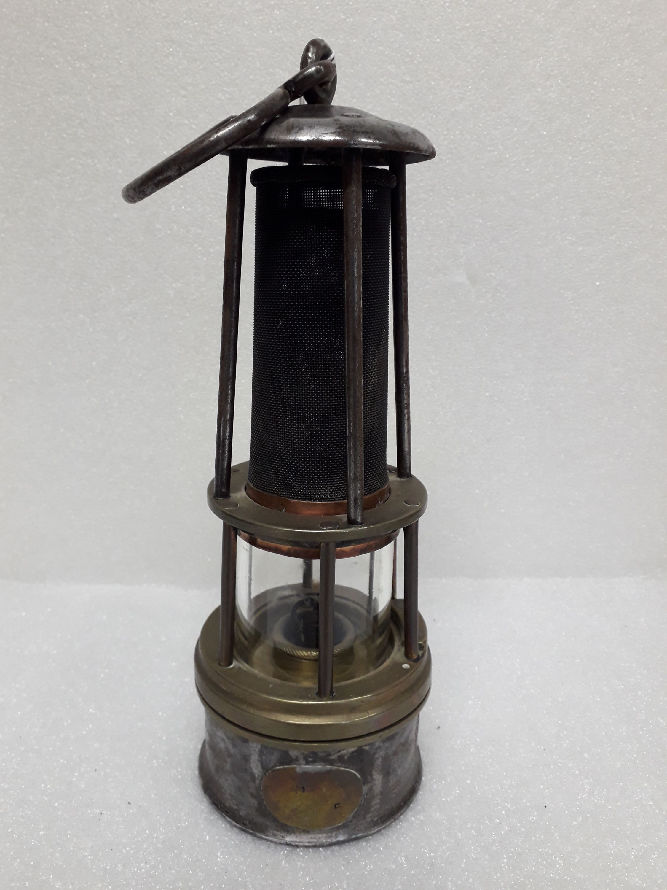 Lampe de mine à huile de modèle Clanny, peut-être du fabricant belge Dufrane & Castiau, vers 1880.