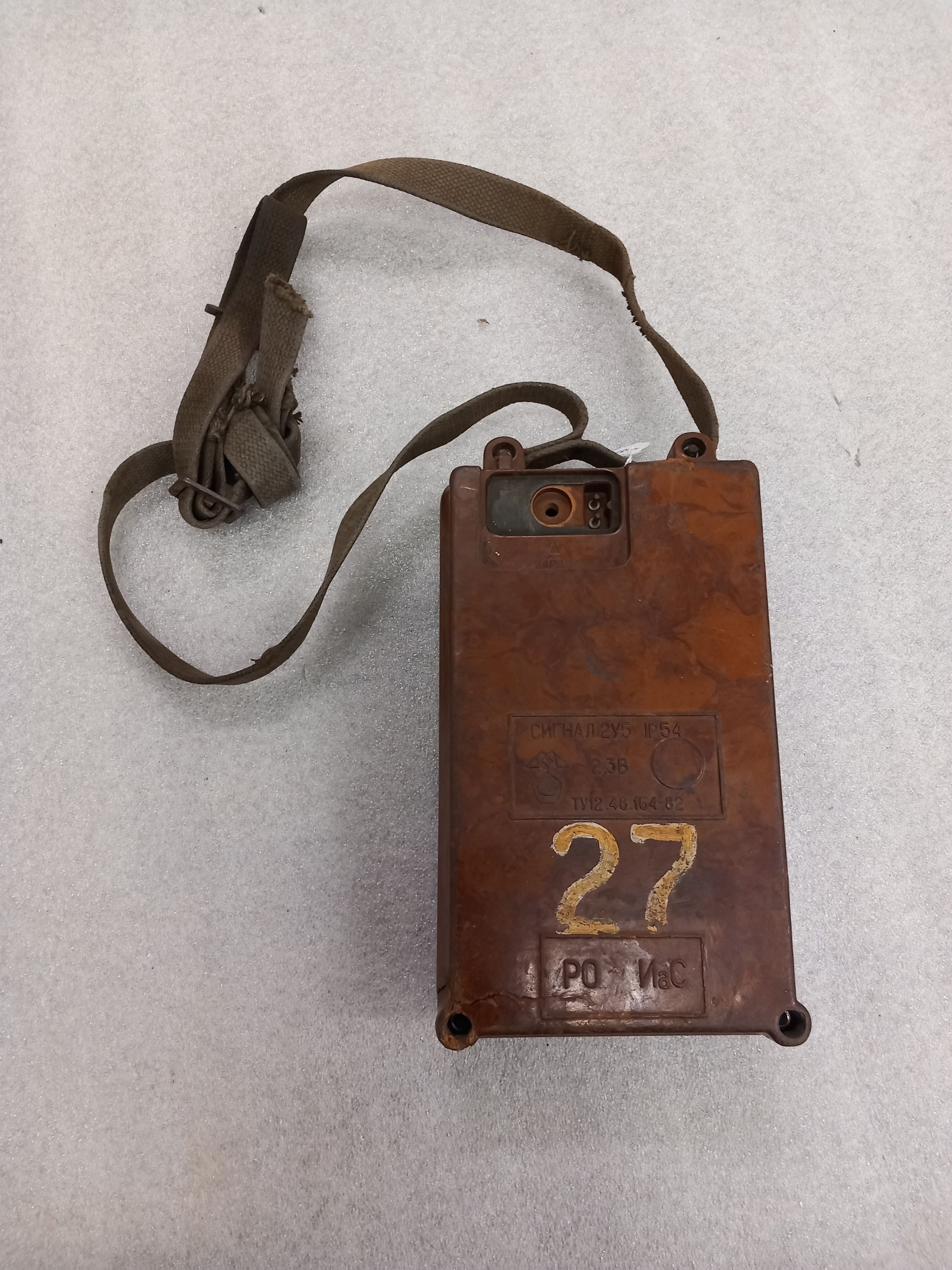 Grisoumètre composé d'un boitier en plastique rectngulaire marron et d'une lanière de suspension.