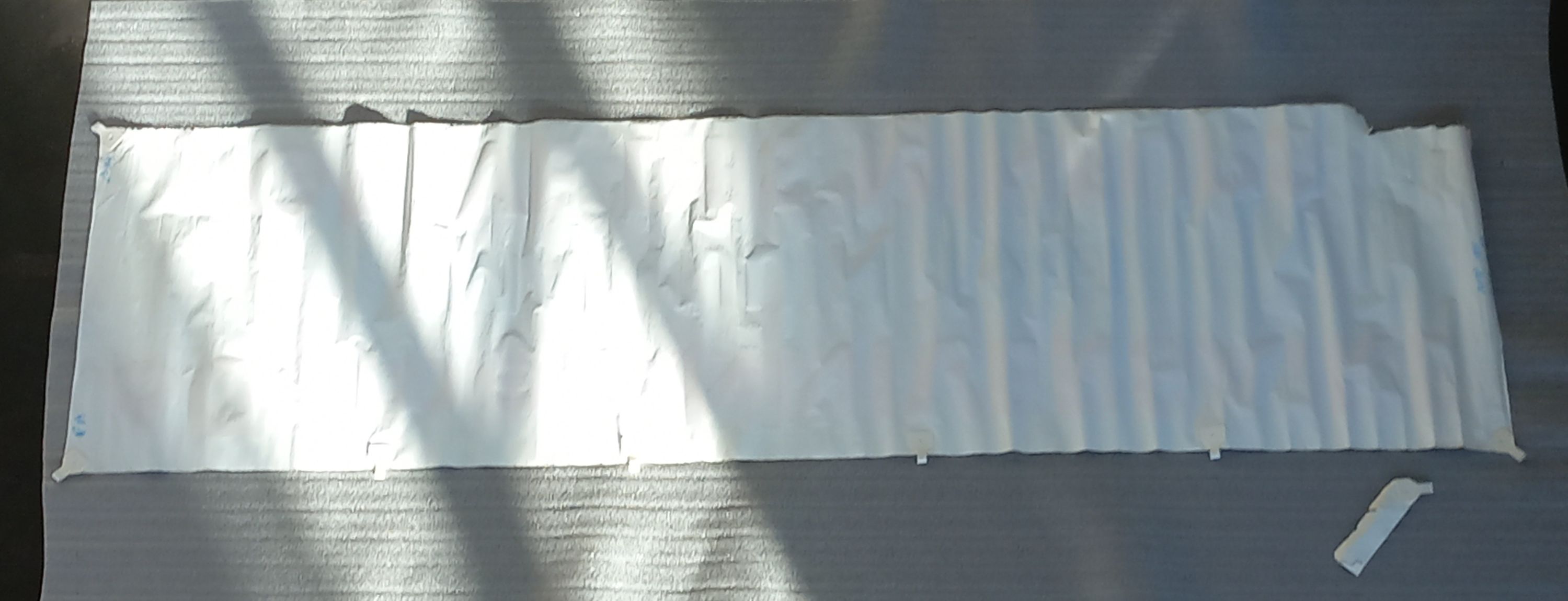Bannière en papier avec des inscriptions autocollantes et des attaches en plastique.