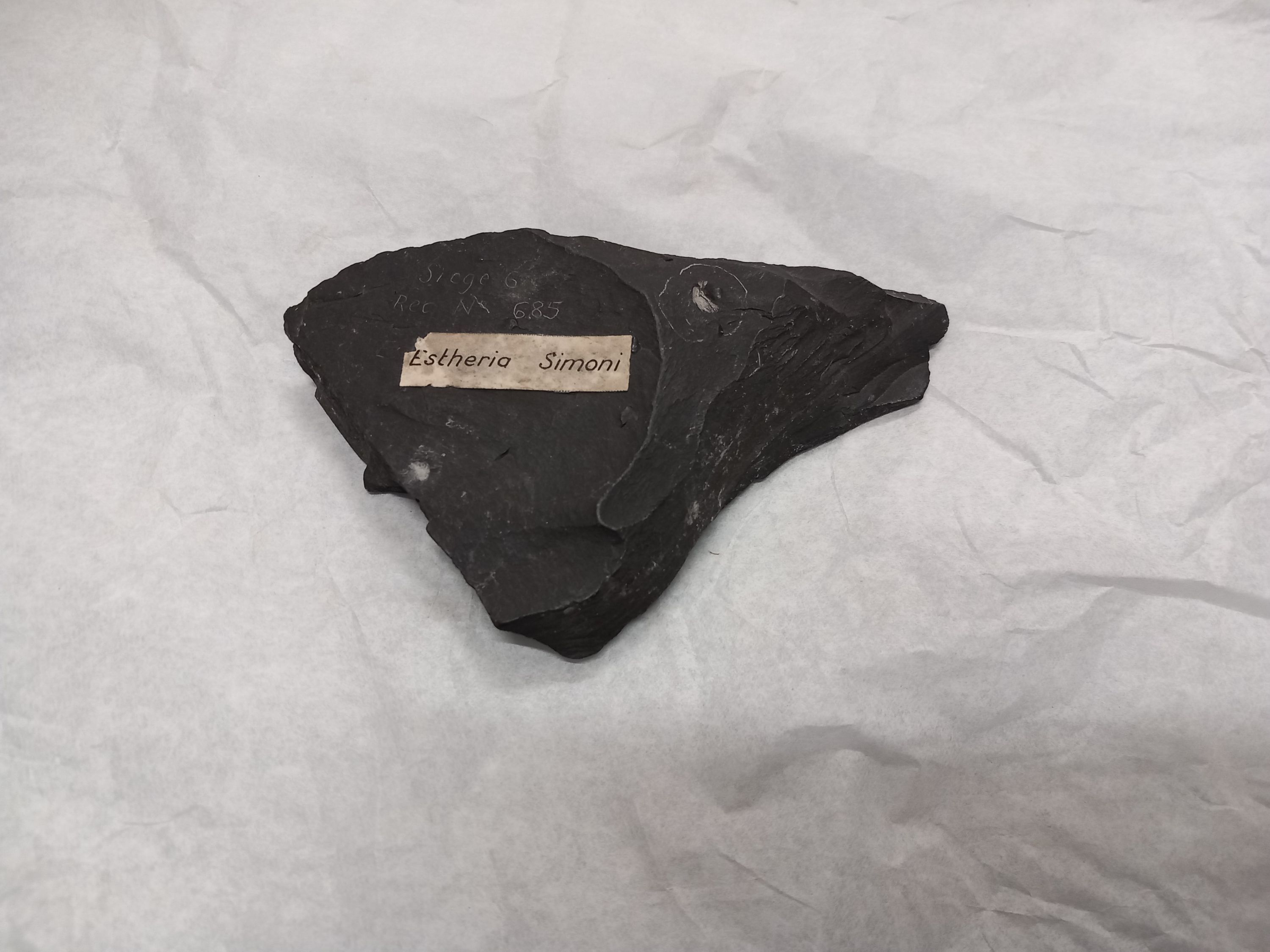 Section de carotte de sondage avec le fossile houiller d'Estheria simoni.