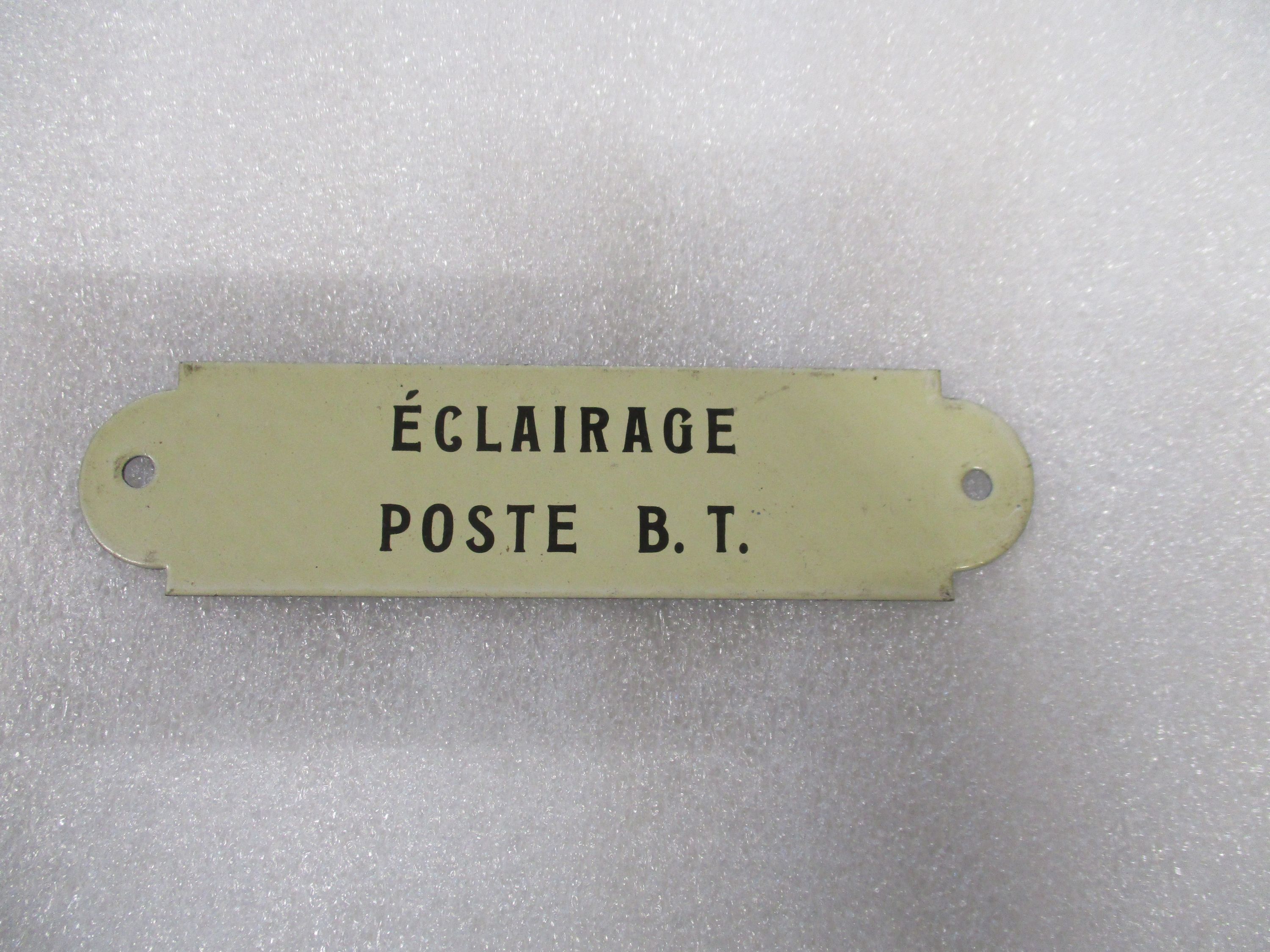 Plaque en forme de cartouche à fond crème avec une inscription.