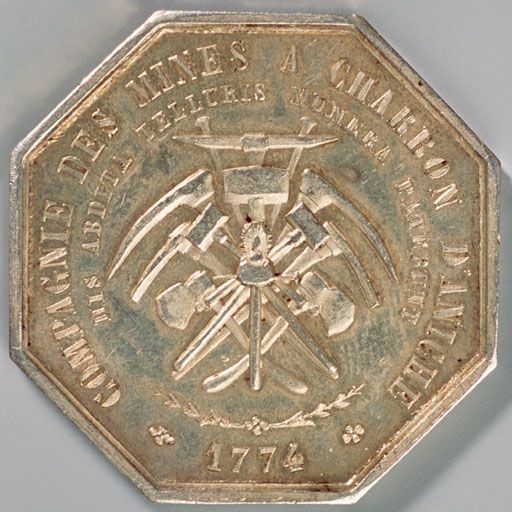 Médaille en argent de forme octogonale de la Compagnie des Mines d'Aniche