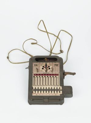 Aspect général : état moyen Autre(s) numéro(s) : 1503 (Ancien numéro) Créateurs : Aconit Création / Exécution : Aconit entre 1950 et 1974 Date d'utilisation : 20e siècle Date de création : 15/11/2024 10:23 Date de création / exécution : entre 1950 et 1974 Date de dernière modification : 12/09/2025 11:50 Date du constat d'état : 13/09/2017 Description : La DA 702 est une calculatrice électromécanique "à tirett... Diffusion : Publique Domaine(s) DMF : Patrimoine tech, scient ou issu de mine Dénomination : machine à calculer Dénominations : machine à calculer Identifiant : 12 600 Identifiant universel unique : oai:collections.chm-lewarde.com:gestion/publicationNotice... Illustrations : 1976-386.jpg (141,21 ko) ; 386.jpg (700,61 ko) Index lieux d'utilisation : Douai Index matières : Métal ; Fil électrique ; papier ; Plastique ; Verre Index utilisateurs : SAGEC Index utilisations/destinations : comptabilité Lien : https://collections.chm-lewarde.com/ws/gestion/app/dataBr... Localisation permanente : Réserve 1er étage - C2-04 Marques et inscriptions : numéro Matières et techniques : Métal Fil électrique papier Plastique Verre Mesures : Hauteur en cm : 10.5 Longueur en cm : 23.5 Largeur en cm ... Nombre d'objets : 1 Nombre de parties : 1 Notes sur le constat d'état : encrassement, corrosion, Numéro d'inventaire : 76.386 Oeuvre du domaine public : Oui Où : Douai Quand : entre 1950 et 1974 Qui : Aconit ; SAGEC Quoi : Patrimoine tech, scient ou issu de mine ; machine à calculer Source : CHM Lewarde - Espace de gestion Utilisation / Destination : comptabilité SAGEC France, Nord-Pas-de-Calais, Nord, Doua... 76.388 machine à calculer