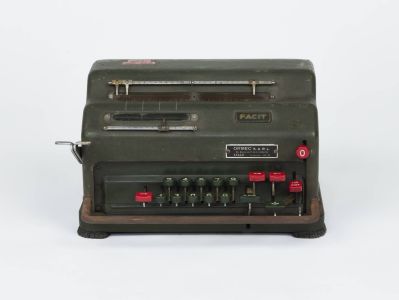 Analyse représentation/décor : COMPTABILITE, MATERIEL DE BUREAU Ancienne(s) appartenance(s) : Billy-Montigny D.A.G (Direction des activités de gestion) Aspect général : état moyen Autre(s) numéro(s) : 466 (Ancien numéro) Créateurs : Atvidaberg-Facit Création / Exécution : exécution : Atvidaberg-Facit (Fabrique) Scandinavie, Suèd... Date d'utilisation : 2e moitié 20e siècle Date de création : 15/11/2024 10:22 Date de création / exécution : vers 1950 Date de dernière modification : 12/09/2025 11:50 Date de l'acte d'acquisition : 1974 Date du constat d'état : 24/01/2018 Description : Machine à calculer électrique semi-automatique noire de f... Diffusion : Publique Domaine(s) DMF : Patrimoine tech, scient ou issu de mine Donateur(s), testateur(s) ou vendeur(s) : Billy-Montigny D.A.G (Direction des activités de gestion) Dénomination : machine à calculer Dénominations : machine à calculer Elements de la représentation : COMPTABILITE ; MATERIEL DE BUREAU Identifiant : 12 463 Identifiant universel unique : oai:collections.chm-lewarde.com:gestion/publicationNotice... Illustrations : 8100385.JPG (44,38 ko) ; 385-2.jpg (424,24 ko) ; 385-1.jpg (512,32 ko) Index lieux d'utilisation : Billy-Montigny Index lieux de création : Suède Index matières : Métal émaillé ; Plastique ; Caoutchouc ; Métal Index utilisateurs : H.B.N.P.C.(2) Index utilisations/destinations : comptabilité Lien : https://collections.chm-lewarde.com/ws/gestion/app/dataBr... Localisation : Lewarde ; Centre historique minier, musée de la mine, cen... Localisation permanente : Bureau du comptable (bât 5) Marques et inscriptions : Marque, lieu de fabrication Français Etiquette Matières et techniques : Métal émaillé Plastique Caoutchouc Plastique Métal Mesures : Hauteur en cm : 15.5 Longueur en cm : 29 Largeur en cm : 25 Mode d'acquisition : don manuel Nombre d'objets : 1 Nombre de parties : 1 Notes sur le constat d'état : Ecaillement et éclats dans l'émail, traces d'usage, craq... Numéro d'inventaire : 74.385 Oeuvre du domaine public : Oui Où : Suède ; Billy-Montigny Précisions sur l'Utilisation / Destination : Service des H.B.N.P.C : Direction des affaires générales Quand : vers 1950 Qui : Atvidaberg-Facit ; H.B.N.P.C.(2) ; Billy-Montigny D.A.G (Direction des activités de gestion) Quoi : Patrimoine tech, scient ou issu de mine ; machine à calculer Source : CHM Lewarde - Espace de gestion Statut(s) juridique(s) : propriété publique ; don manuel ; Centre historique minie... Utilisation / Destination : comptabilité (Utilisation d'origine) H.B.N.P.C.(2) France... 74.387 machine à calculer