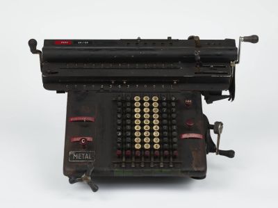 Analyse représentation/décor : COMPTABILITE, MATERIEL DE BUREAU Aspect général : état moyen Autre(s) numéro(s) : 1124 (Ancien numéro) Créateurs : ARITHMETIC S.A. Création / Exécution : ARITHMETIC S.A. vers 1940 Date d'utilisation : 20e siècle Date de création : 15/11/2024 10:23 Date de création / exécution : vers 1940 Date de dernière modification : 12/09/2025 11:50 Date du constat d'état : 16/08/2017 Description : Ce modèle de calculatrice électrique de ARITHMETIC S.A. s... Diffusion : Publique Domaine(s) DMF : Patrimoine tech, scient ou issu de mine Dénomination : machine à calculer Dénominations : machine à calculer Elements de la représentation : COMPTABILITE ; MATERIEL DE BUREAU Identifiant : 12 586 Identifiant universel unique : oai:collections.chm-lewarde.com:gestion/publicationNotice... Illustrations : 1976.365-0022.jpg (546,98 ko) CAMPAGNE LEWARDE 2024_SESSI... ; 365.jpg (700,7 ko) Index lieux d'utilisation : Billy-Montigny Index matières : Fer ; Plastique Index utilisateurs : SAGEC Index utilisations/destinations : comptabilité Lien : https://collections.chm-lewarde.com/ws/gestion/app/dataBr... Localisation permanente : Réserve 1er étage - C2-03 Marques et inscriptions : numéro, plaque Matières et techniques : Fer Plastique Mesures : Hauteur en cm : 25 Longueur en cm : 38 Largeur en cm : 31 Nombre d'objets : 1 Nombre de parties : 1 Notes sur le constat d'état : manque des touches, corrosion, encrassement Numéro d'inventaire : 76.365 Oeuvre du domaine public : Oui Où : Billy-Montigny Quand : vers 1940 Qui : ARITHMETIC S.A. ; SAGEC Quoi : Patrimoine tech, scient ou issu de mine ; machine à calculer Source : CHM Lewarde - Espace de gestion Utilisation / Destination : comptabilité (Utilisation d'origine) SAGEC France, Nord-P... 76.367 machine à calculer