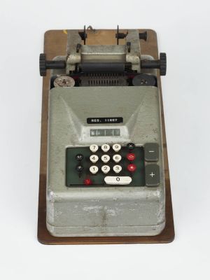 Aspect général : état moyen Autre(s) numéro(s) : 1505 (Ancien numéro) Créateurs : FELT & TARRANT Création / Exécution : exécution : FELT & TARRANT vers 1930 Date d'utilisation : 20e siècle Date de création : 15/11/2024 10:23 Date de création / exécution : vers 1930 Date de dernière modification : 12/09/2025 11:50 Date du constat d'état : 03/07/2017 Description : Le comptometer Felt et Tarrant MFG Co. est composé d’une ... Diffusion : Publique Domaine(s) DMF : Patrimoine tech, scient ou issu de mine Dénomination : additionneuse machine à calculer Dénominations : additionneuse ; machine à calculer Identifiant : 12 589 Identifiant universel unique : oai:collections.chm-lewarde.com:gestion/publicationNotice... Illustrations : 1976.393-0035.jpg (429,11 ko) CAMPAGNE LEWARDE 2024_SESSI... ; 393-2.jpg (777,09 ko) ; 393-1.jpg (741,89 ko) Index matières : Métal ; Plastique Index utilisations/destinations : comptabilité Lien : https://collections.chm-lewarde.com/ws/gestion/app/dataBr... Localisation permanente : Réserve 1er étage - C4-04 Marques et inscriptions : plaque Marque Matières et techniques : Métal Plastique Mesures : Hauteur en cm : 15 Longueur en cm : 37 Largeur en cm : 20 Nombre d'objets : 1 Nombre de parties : 1 Notes sur le constat d'état : Encrassement, corrosion Numéro d'inventaire : 76.393 Oeuvre du domaine public : Oui Quand : vers 1930 Qui : FELT & TARRANT Quoi : Patrimoine tech, scient ou issu de mine ; additionneuse ; machine à calculer Source : CHM Lewarde - Espace de gestion Utilisation / Destination : comptabilité 20e siècle 76.398 machine à calculer