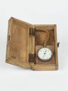 Aspect général : état moyen Créateurs : Société SERGOT Création / Exécution : exécution : Société SERGOT France, Ile-de-France, Paris (... Date de création : 15/11/2024 10:32 Date de dernière modification : 12/09/2025 11:43 Date du constat d'état : 05/02/2020 Description : Manomètre à mercure gradué de 0 à 30, composé d'un tube e... Diffusion : Publique Domaine(s) DMF : Patrimoine tech, scient ou issu de mine Dénomination : manomètre Dénominations : manomètre Identifiant : 13 845 Identifiant universel unique : oai:collections.chm-lewarde.com:gestion/publicationNotice... Illustrations : AV-1990-1328.jpg (86,68 ko) Index lieux de création : Paris Index matières : Bois ; Verre ; Caoutchouc ; Métal ; Mercure ; Métal émaillé Index utilisations/destinations : mesure Lien : https://collections.chm-lewarde.com/ws/gestion/app/dataBr... Localisation permanente : Réserve 1er étage - F sol Marques et inscriptions : nom du fabricant, graduation, Etiquette Français Matières et techniques : Bois Verre Caoutchouc Métal Mercure Métal émaillé Mesures : Hauteur en cm : 76 Longueur en cm : 23 Largeur en cm : 3 Nombre d'objets : 1 Nombre de parties : 1 Notes sur le constat d'état : encrasement, corrosion, rigidité et craquelures du caoutc... Numéro d'inventaire : av.90.1328 Oeuvre du domaine public : Oui Où : Paris Qui : Société SERGOT Quoi : Patrimoine tech, scient ou issu de mine ; manomètre Source : CHM Lewarde - Espace de gestion Utilisation / Destination : mesure av.90.1330 manomètre