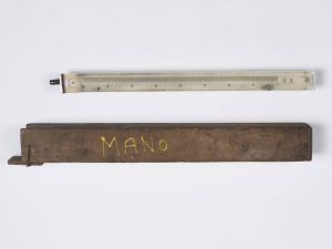 Aspect général : état moyen Création / Exécution : exécution : Date : 20e siècle 2eme moitié Date d'utilisation : 20e siècle Date de création : 15/11/2024 10:32 Date de dernière modification : 12/09/2025 11:43 Date du constat d'état : 05/02/2020 Description : Manomètre à eau gradué de 0 à 400 composé d'une règle gra... Diffusion : Publique Domaine(s) DMF : Patrimoine tech, scient ou issu de mine Dénomination : manomètre Dénominations : manomètre Identifiant : 13 850 Identifiant universel unique : oai:collections.chm-lewarde.com:gestion/publicationNotice... Illustrations : AV-1990-1321.jpg (72,16 ko) ; 1321-1.jpg (466,24 ko) ; 1321.JPG (852,34 ko) Index matières : Métal ; Plastique ; Bois ; Corde Index utilisations/destinations : mesure Lien : https://collections.chm-lewarde.com/ws/gestion/app/dataBr... Localisation permanente : Réserve 1er étage - D3-10 Marques et inscriptions : graduation Français Matières et techniques : Métal Plastique Bois Corde Mesures : Longueur en cm : 61.7 Largeur en cm : 7.9 Epaisseur en cm... Nombre d'objets : 1 Nombre de parties : 3 Notes sur le constat d'état : manomètre cassé en deux, encrassement, usure, rayures Numéro d'inventaire : av.90.1321 Oeuvre du domaine public : Oui Quand : 20e siècle Quoi : Patrimoine tech, scient ou issu de mine ; manomètre Source : CHM Lewarde - Espace de gestion Utilisation / Destination : mesure 20e siècle av.90.1322 manomètre