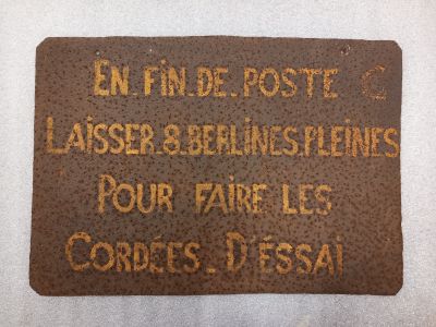 Aspect général : bon état Date de création : 15/11/2024 10:32 Date de dernière modification : 12/09/2025 11:43 Date du constat d'état : 06/03/2018 Description : Panneau rectangulaire en tôle émaillée blanche avec inscr... Diffusion : Publique Domaine(s) DMF : Patrimoine tech, scient ou issu de mine Dénomination : panneau Dénominations : panneau Identifiant : 13 937 Identifiant universel unique : oai:collections.chm-lewarde.com:gestion/publicationNotice... Illustrations : AV.90.2536-1.jpg (268,39 ko) CAMPAGNE LEWARDE 2024_SESSION 2 ; 2536.JPG (573,97 ko) Index matières : Tôle émaillée Lien : https://collections.chm-lewarde.com/ws/gestion/app/dataBr... Localisation permanente : Réserve 1er étage - D4-01 Marques et inscriptions : consigne de sécurité Français Matières et techniques : Tôle émaillée Mesures : Hauteur en cm : 30 Longueur en cm : 40 Nombre d'objets : 1 Nombre de parties : 1 Notes sur le constat d'état : corrosion, lacunes de l'émail Numéro d'inventaire : av.90.2536 Oeuvre du domaine public : Oui Quoi : Patrimoine tech, scient ou issu de mine ; panneau Source : CHM Lewarde - Espace de gestion AV.90.2540 panneau
