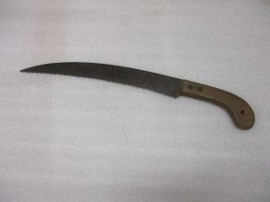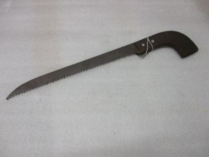 Analyse représentation/décor : BOISAGE, MATERIEL D'EXPLOITATION, scie Ancienne(s) appartenance(s) : H.B.N.P.C Aspect général : bon état Création / Exécution : exécution : 20e siècle Date d'utilisation : 20e siècle Date de création : 15/11/2024 10:31 Date de création / exécution : 20e siècle Date de dernière modification : 12/09/2025 11:46 Date du constat d'état : 14/03/2019 Description : Scie de mineur dite escofine, sans fourreau. Diffusion : Publique Domaine(s) DMF : Patrimoine tech, scient ou issu de mine Donateur(s), testateur(s) ou vendeur(s) : H.B.N.P.C Dénomination : scie Dénominations : scie Elements de la représentation : BOISAGE ; MATERIEL D'EXPLOITATION ; scie Identifiant : 13 779 Identifiant universel unique : oai:collections.chm-lewarde.com:gestion/publicationNotice... Illustrations : 8400102.JPG (21,77 ko) ; 102.JPG (951,43 ko) Index lieux d'utilisation : Nord-Pas-de-Calais Index matières : Bois ; Métal Index utilisations/destinations : boisage Lien : https://collections.chm-lewarde.com/ws/gestion/app/dataBr... Localisation : Lewarde ; Centre historique minier, musée de la mine, cen... Localisation permanente : Réserve 1er étage - E4-12 Marques et inscriptions : Marque de fabrique (sur la lame) Matières et techniques : Bois Métal Mesures : Longueur en cm : 50 Largeur en cm : 10 Epaisseur en cm : 2.2 Mode d'acquisition : don manuel Nombre d'objets : 1 Nombre de parties : 1 Notes sur le constat d'état : corrosion, usure de la poignée, déformation des dents, ef... Numéro d'inventaire : av.90.102 Oeuvre du domaine public : Oui Où : Nord-Pas-de-Calais Quand : 20e siècle Qui : H.B.N.P.C Quoi : Patrimoine tech, scient ou issu de mine ; scie Source : CHM Lewarde - Espace de gestion Statut(s) juridique(s) : propriété publique ; don manuel ; Centre historique minie... Utilisation / Destination : boisage (Utilisation d'origine) France, Nord-Pas de Calai... av.90.1587 scie