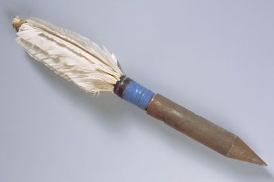 Analyse représentation/décor : javelot, jeu Ancienne(s) appartenance(s) : MILOSEK Aspect général : mauvais état Bibliographie : 6631 et 40W16 . Création / Exécution : exécution : Date : 20e siècle 2eme moitié Date d'utilisation : 2e moitié 20e siècle Date de création : 15/11/2024 10:25 Date de dernière modification : 12/09/2025 11:47 Date de l'acte d'acquisition : 1987 Date du constat d'état : 26/01/2022 Description : Javelot composé d'une pointe en métal et de plumes blanch... Diffusion : Publique Domaine(s) DMF : ethnologie Donateur(s), testateur(s) ou vendeur(s) : MILOSEK Dénomination : javelot Dénominations : javelot Elements de la représentation : javelot ; jeu Identifiant : 12 881 Identifiant universel unique : oai:collections.chm-lewarde.com:gestion/publicationNotice... Illustrations : 8300216.JPG (18,45 ko) ; 216.jpg (454,19 ko) Index lieux d'utilisation : Lewarde Index matières : Fer ; Plume ; Plastique ; ruban adhésif Index utilisateurs : MILOSEK Index utilisations/destinations : loisirs Lien : https://collections.chm-lewarde.com/ws/gestion/app/dataBr... Localisation : Lewarde ; Centre historique minier, musée de la mine, cen... Localisation permanente : Jeux - La vie dans la cité minière (bât 5) Matières et techniques : Fer Plume Plastique ruban adhésif Mesures : Hauteur en cm : 39 Diamètre en cm : 6.5 Mode d'acquisition : don manuel Nombre d'objets : 1 Nombre de parties : 1 Notes sur le constat d'état : objet manipulable par le public dont perte de matière, us... Numéro d'inventaire : 87.216 Oeuvre du domaine public : Oui Où : Lewarde Quand : 2e moitié 20e siècle Qui : MILOSEK Quoi : ethnologie ; javelot Source : CHM Lewarde - Espace de gestion Statut(s) juridique(s) : propriété publique ; don manuel ; Centre historique minie... Utilisation / Destination : loisirs (Utilisation d'origine) MILOSEK France, Nord-Pas ... 93.8899 toupie