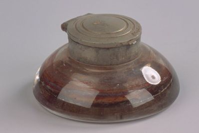 Analyse représentation/décor : MATERIEL DE BUREAU Ancienne(s) appartenance(s) : Bouchain Antiquités "Meubles d'Antan" Aspect général : bon état Date d'utilisation : 1ère moitié 20e siècle Date de création : 15/11/2024 10:26 Date de dernière modification : 12/09/2025 11:48 Date de l'acte d'acquisition : 1993 Date du constat d'état : 19/11/2018 Description : Encrier circulaire en verre avec un couvercle en métal. Diffusion : Publique Domaine(s) DMF : ethnologie Donateur(s), testateur(s) ou vendeur(s) : Bouchain Antiquités "Meubles d'Antan" Dénomination : encrier Dénominations : encrier Elements de la représentation : MATERIEL DE BUREAU Identifiant : 12 927 Identifiant universel unique : oai:collections.chm-lewarde.com:gestion/publicationNotice... Illustrations : 8104677.JPG (50,99 ko) ; 4677.JPG (641,76 ko) Index matières : Verre ; Métal Index utilisations/destinations : bureau Lien : https://collections.chm-lewarde.com/ws/gestion/app/dataBr... Localisation : Lewarde ; Centre historique minier, musée de la mine, cen... Localisation permanente : Réserve 1er étage - armoire forte Matières et techniques : Verre Métal Mesures : Hauteur en cm : 5.5 Largeur en cm : 8,5 Mode d'acquisition : achat Nombre d'objets : 1 Nombre de parties : 1 Notes sur le constat d'état : résidus d'encre, traces d'usure sur le couvercle Numéro d'inventaire : 93.4677 Oeuvre du domaine public : Oui Quand : 1ère moitié 20e siècle Qui : Bouchain Antiquités "Meubles d'Antan" Quoi : ethnologie ; encrier Source : CHM Lewarde - Espace de gestion Statut(s) juridique(s) : propriété publique ; achat ; Centre historique minier, mu... Utilisation / Destination : bureau (Utilisation d'origine) 1ère moitié 20e siècle 93.4678 encrier