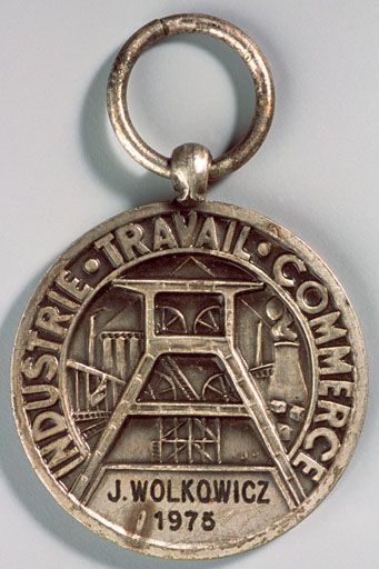 Analyse représentation/décor : RECOMPENSE DU TRAVAIL Ancienne(s) appartenance(s) : WOLKOWICZ Aspect général : bon état Création / Exécution : création : 1975 Date d'utilisation : 1975 Date de création : 15/11/2024 10:26 Date de création / exécution : 1975 Date de dernière modification : 12/09/2025 11:48 Date de l'acte d'acquisition : 1994 Date du constat d'état : 08/01/2018 Description : Médaille du travail circulaire avec un anneau de suspensi... Diffusion : Publique Domaine(s) DMF : Numismatique Donateur(s), testateur(s) ou vendeur(s) : WOLKOWICZ Dénomination : médaille Dénominations : médaille Elements de la représentation : RECOMPENSE DU TRAVAIL Identifiant : 12 940 Identifiant universel unique : oai:collections.chm-lewarde.com:gestion/publicationNotice... Illustrations : 7004606A.JPG (39,73 ko) ; 7004606B.JPG (35,21 ko) Index matières : Métal argenté Index utilisateurs : WOLKOWICZ Index utilisations/destinations : récompense Lien : https://collections.chm-lewarde.com/ws/gestion/app/dataBr... Localisation : Lewarde ; Centre historique minier, musée de la mine, cen... Localisation permanente : Les trois âges de la mine (Bât 5) Marques et inscriptions : Nom (sur l'avers) Français (sur le revers) Matières et techniques : Métal argenté Mesures : Longueur en cm : 4.2 Largeur en cm : 2.7 Mode d'acquisition : don manuel Nombre d'objets : 1 Nombre de parties : 1 Notes sur le constat d'état : noircissement Numéro d'inventaire : 92.4606 Oeuvre du domaine public : Oui Précisions sur l'Utilisation / Destination : Médaille du travail. Quand : 1975 Qui : WOLKOWICZ Quoi : Numismatique ; médaille Source : CHM Lewarde - Espace de gestion Statut(s) juridique(s) : propriété publique ; don manuel ; Centre historique minie... Utilisation / Destination : récompense (Utilisation d'origine) WOLKOWICZ 1975 92.4607 médaille