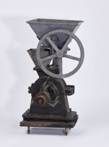 Aspect général : état moyen Autre(s) numéro(s) : 497 (Ancien numéro) Création / Exécution : exécution : Date : 20e siècle 2eme moitié Date d'utilisation : 2e moitié 20e siècle Date de création : 15/11/2024 10:23 Date de dernière modification : 12/09/2025 11:38 Date du constat d'état : 17/10/2017 Description : Broyeur composé d'un entonnoir et d'une manivelle Diffusion : Publique Domaine(s) DMF : Patrimoine tech, scient ou issu de mine Dénomination : broyeur Dénominations : broyeur Identifiant : 12 520 Identifiant universel unique : oai:collections.chm-lewarde.com:gestion/publicationNotice... Illustrations : 1974-2478.jpg (146,52 ko) ; 2478-1.jpg (976,94 ko) ; 2478.jpg (695,94 ko) Index lieux d'utilisation : cokerie d'Harnes Index matières : Métal émaillé ; Acier ; Bois Index utilisations/destinations : cokerie Lien : https://collections.chm-lewarde.com/ws/gestion/app/dataBr... Localisation permanente : Réserve 1er étage - C7-10 Marques et inscriptions : plaque Français Matières et techniques : Métal émaillé Acier Bois Mesures : Hauteur en cm : 88 Longueur en cm : 48 Largeur en cm : 46 Nombre d'objets : 1 Nombre de parties : 1 Notes sur le constat d'état : encrassement, corrosion, surface écaillée, socle rapporté... Numéro d'inventaire : 74.2478 Oeuvre du domaine public : Oui Où : cokerie d'Harnes Quand : 2e moitié 20e siècle Quoi : Patrimoine tech, scient ou issu de mine ; broyeur Source : CHM Lewarde - Espace de gestion Utilisation / Destination : cokerie France, Nord-Pas de Calais, Harnes, cokerie d'Har... 74.2560 panneau