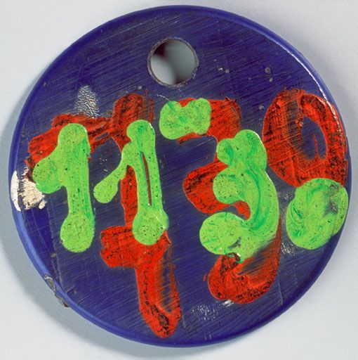 Description : Jeton de lampisterie en plastique bleu, de forme circulai...